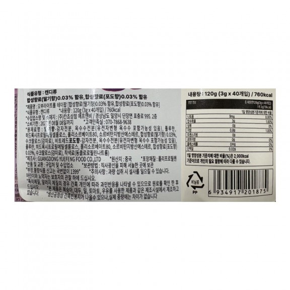 600 오브라이트 포도 딸기 2가지맛 3g *40개입 (1박스 12개) > 캔디