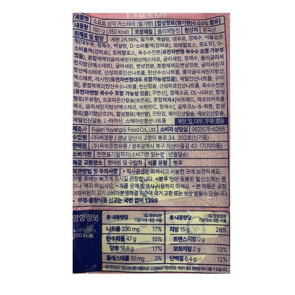 1000 소프트 삼각 카스테라 딸기향 100g*10봉 (한박스 32개) 천원빵 > 스낵