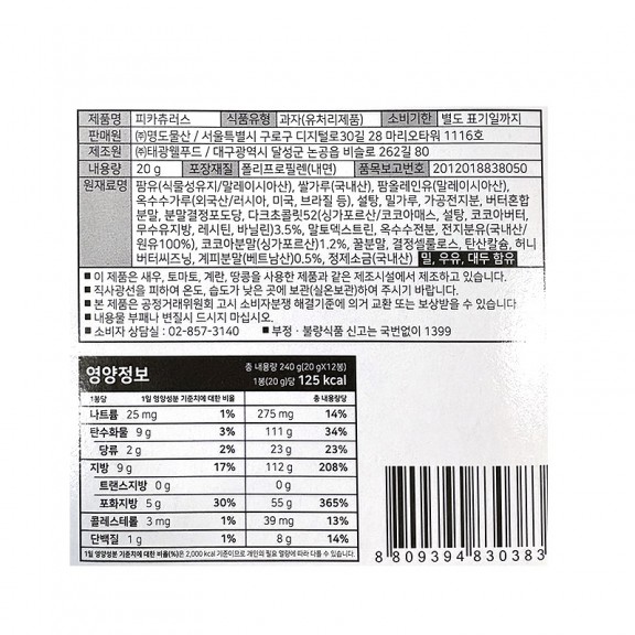 1000 (행사) 피카 츄러스 20g *12개입 > 스낵